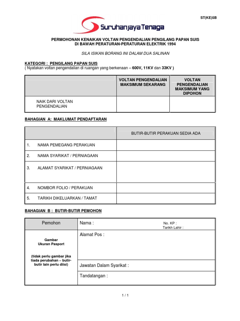 St Ke 5b Borang Permohonan Kenaikan Voltan Pengendalian