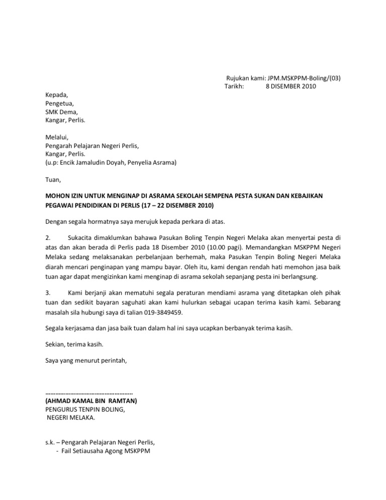 Surat Rasmi Permohonan Asrama Surat Rasmi Z