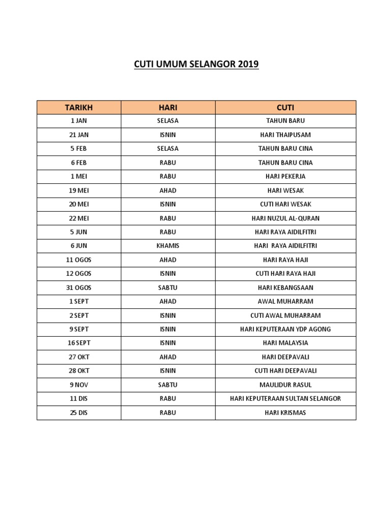 Cuti Umum Selangor 2019 Docx