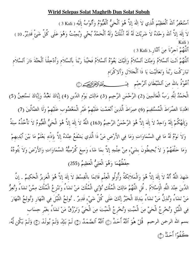 Wirid Selepas Solat Maghrib Dan Solat Subuh